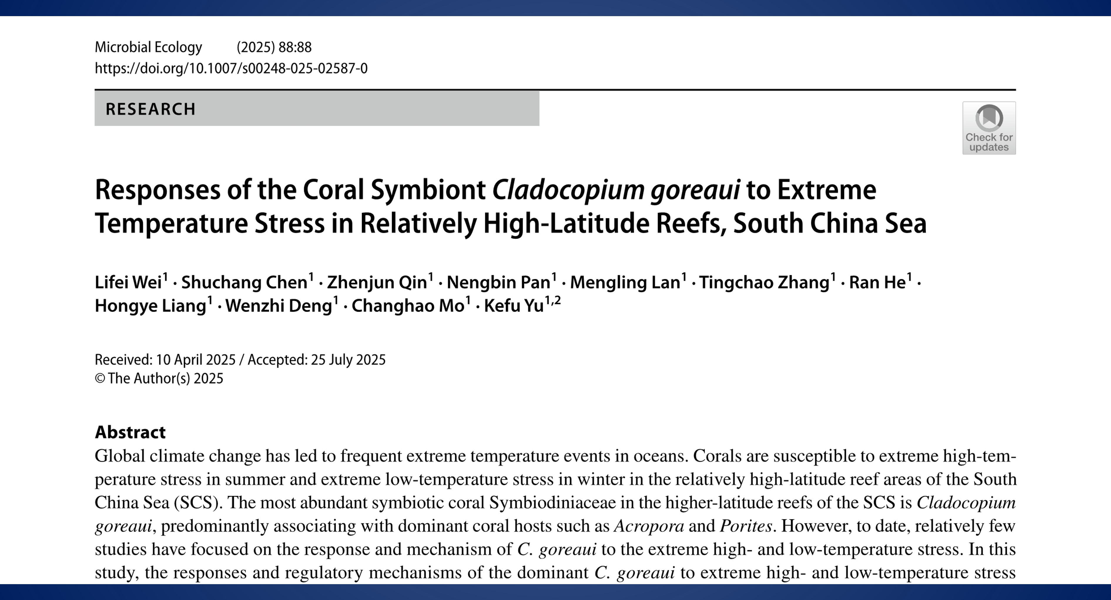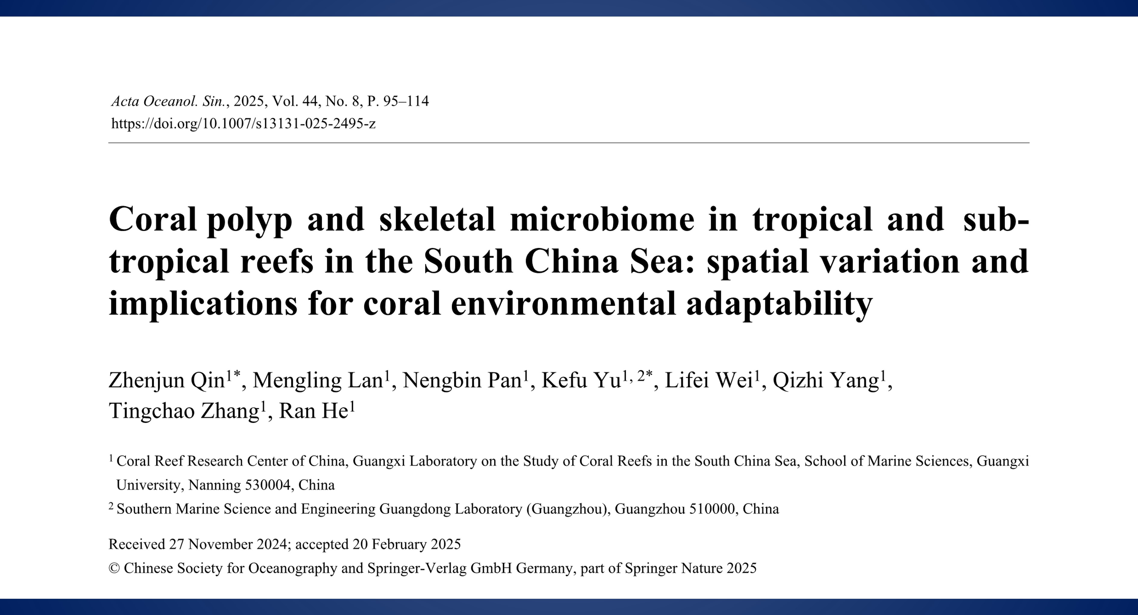 Microbial Ecology: 南海相对高纬度珊瑚...
