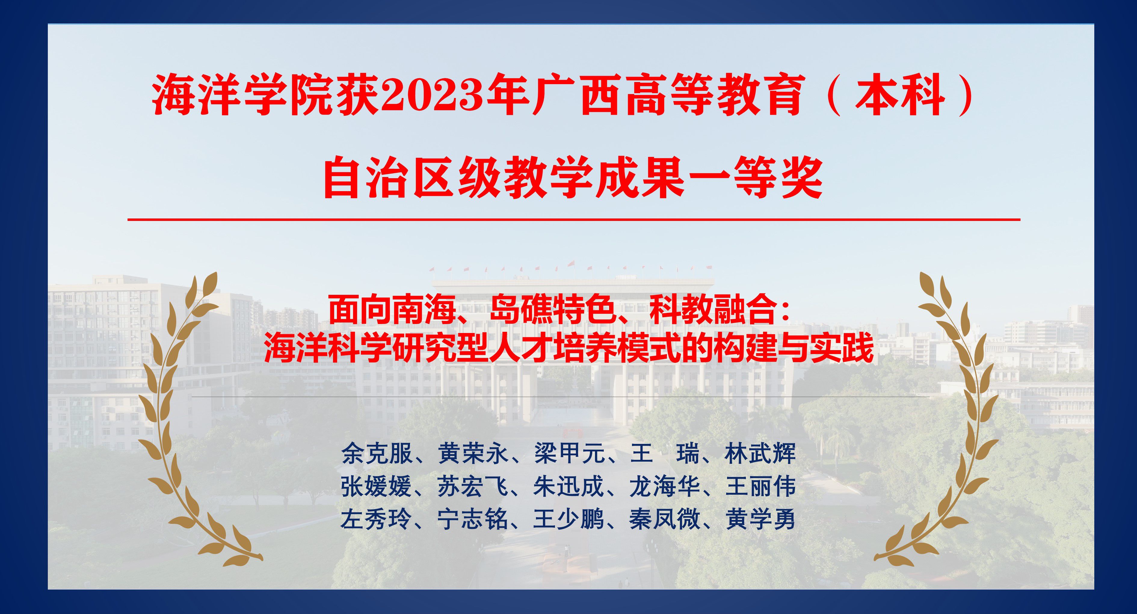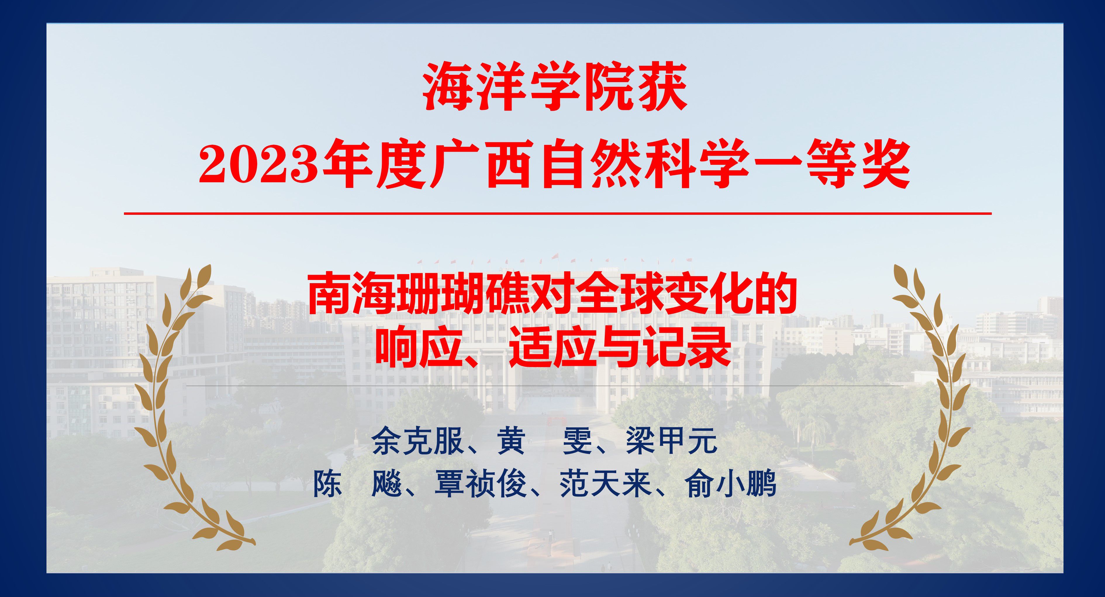 公司珊瑚礁研究成果荣获2023年度广西自...