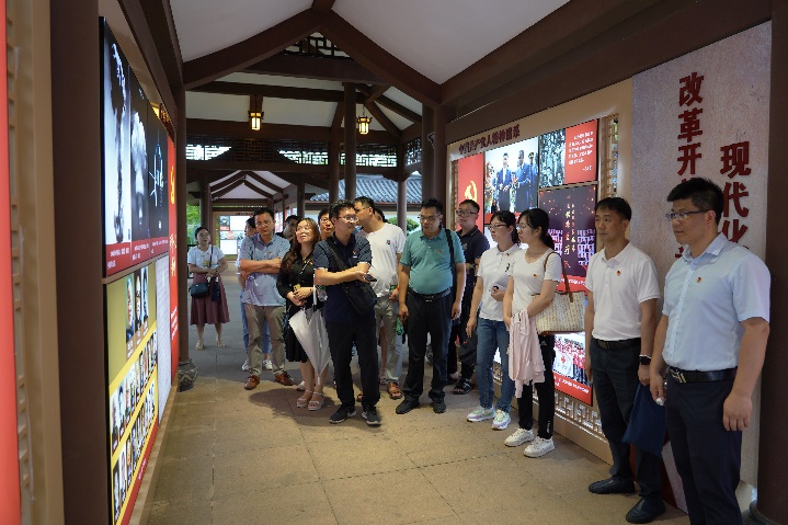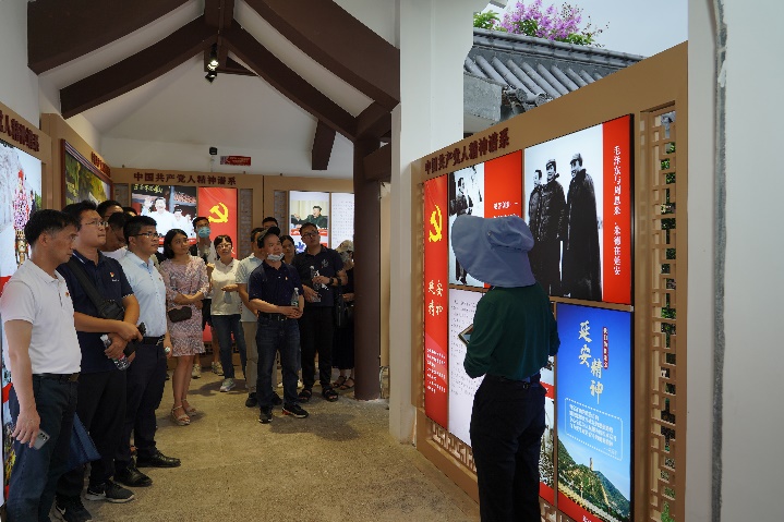 清风徐来,气正爽朗。在讲解员的带领下,全体教职工首先参观了中国共产党人精神谱系主题园,该园以时间为轴,重点展现新民主主义革命时期、社会主义革命和建设时期、改革开放和社会主义现代化建设新时期以及中国特色社会主义新时代所形成的系列伟大精神。大家在参观时纷纷表示要传承伟大精神,进一步坚定信念,以党史学习教育为契机,更加注重加强自身学习和修养,不断自我净化、自我约束、自我完善。