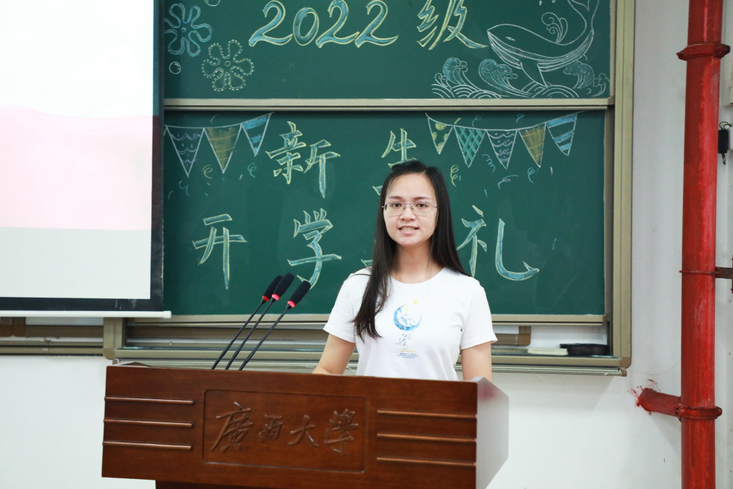 2022级本科生吴国梁、2022级硕士研究生胡思雨代表新生发言。