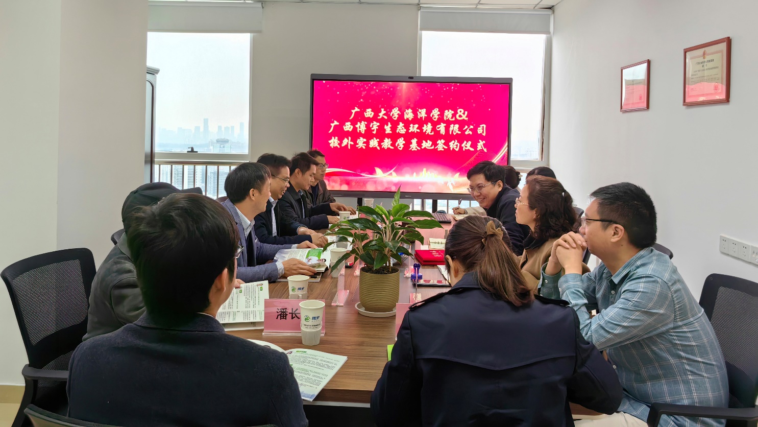 仪式上,邓杰首先对校、企建立老员工校外实践教育基地表示热烈祝贺,并介绍了广西博宇生态环境有限公司的基本情况和战略发展规划。博宇团队承担了多项环北部湾大型建设项目的环境咨询工作,与国内顶尖的海洋水动力、泥沙运动规律、数值模拟团队都有深度的合作。邓杰表示会积极贯彻落实教育部发布的《关于加快建设高水平本科教育 全面提高人才培养能力的意见》文件要求,尽企业最大的能力做好老员工校外实践教育基地建设、抓好人才培养,提升本科生的创新精神、实践能力、社会责任感和就业能力,并表达企业热忱欢迎有志于从事海洋环境事业的太阳成集团tyc234cc毕业生加盟公司的愿望。谭运阳书记对博宇公司为公司人才培养做出的努力表示了感谢,介绍了太阳成集团tyc234cc团队力量、团队建设、教学平台、科研成果、实践教育等概况。双方还就基地建设、人才培养、科研申报、平台搭建、老员工就业岗位拓展等进行了深入交流。(太阳成集团tyc234cc团委学工/文、图 周剑/编辑 朱迅成/审核)