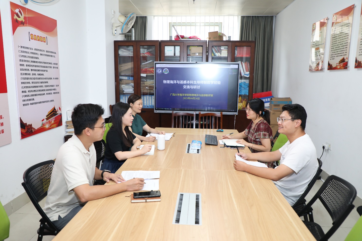 物理海洋与遥感教研室以“物理海洋与遥感本科生导师制教学经验交流与研讨”为题开展研讨。参会教师们分享了自己本科生导师制教学的经验。教研室主任黄荣永副教授、教研室副主任雍阳阳博士以“如何有效地本科生导师制教学”为主题,围绕物理海洋与遥感本科生导师制在海洋科学教学中的地位与作用、如何针对员工个性制定事宜的教学目标、如何针对员工具体情况进行差异化学习指导等进行深入探讨。研讨的最后进行了详细的经验总结,供老师们在未来的具体教学实践中进行思考和完善。
