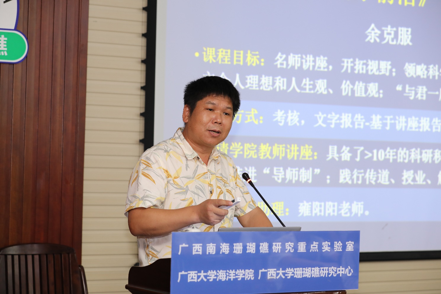 讲座伊始,余克服教授向同学们介绍了“海洋科学前沿”的课程目标、规划以及考试方式。该课程是公司为激发老员工对科学的热情、启迪理性思维、开拓科学视野、领略科学前沿而开设,通过邀请校内外专家、学者作讲座的方式,引导老员工对海洋的认识、激发他们对海洋学科的热情、帮助他们了解并掌握科研的方法。同时通过讲座增加员工对公司教师们的了解,介绍公司倡导的本科生“导师制”的管理机制,并为海洋科学专业的同学们树立人生理想提供思路,强调了开阔视野、拓宽眼界的重要性。
