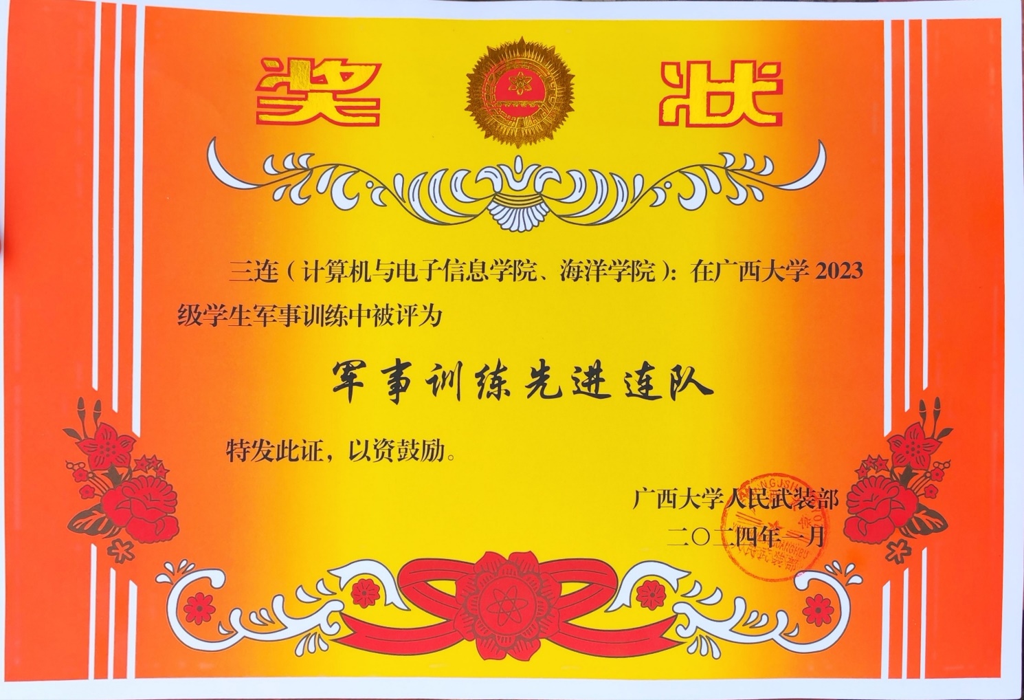 2024年1月13日至1月26日,2023级大员工在公司的统一组织下进行了为期14天的新生军事训练。在1月26日上午举行的“2023及员工军训总结大会”中,公司与计算机与电子信息公司组成的第三连队方阵获得太阳成集团tyc234cc“军事训练先进连队”荣誉称号,并有8名同学获得“军训优秀学员”荣誉称号。