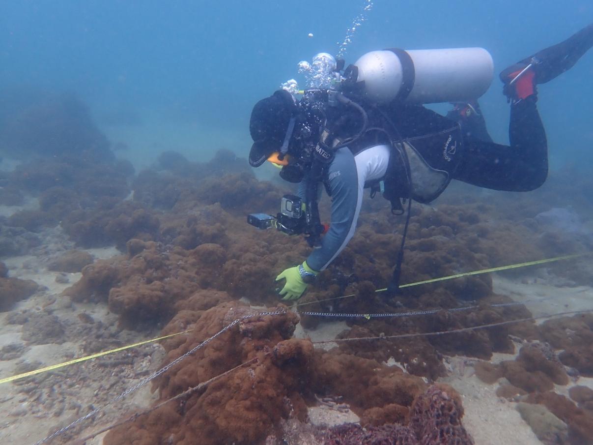 潜水员在检查珊瑚健康状况