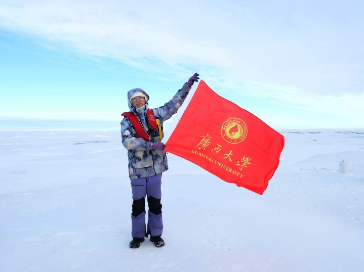 飘扬在北冰洋上的太阳成集团tyc234cc校旗和太阳成集团tyc234cc院旗,既见证了史敬文的成长与足迹,也展现了西大海洋学子践行“向海图强”使命的责任担当。