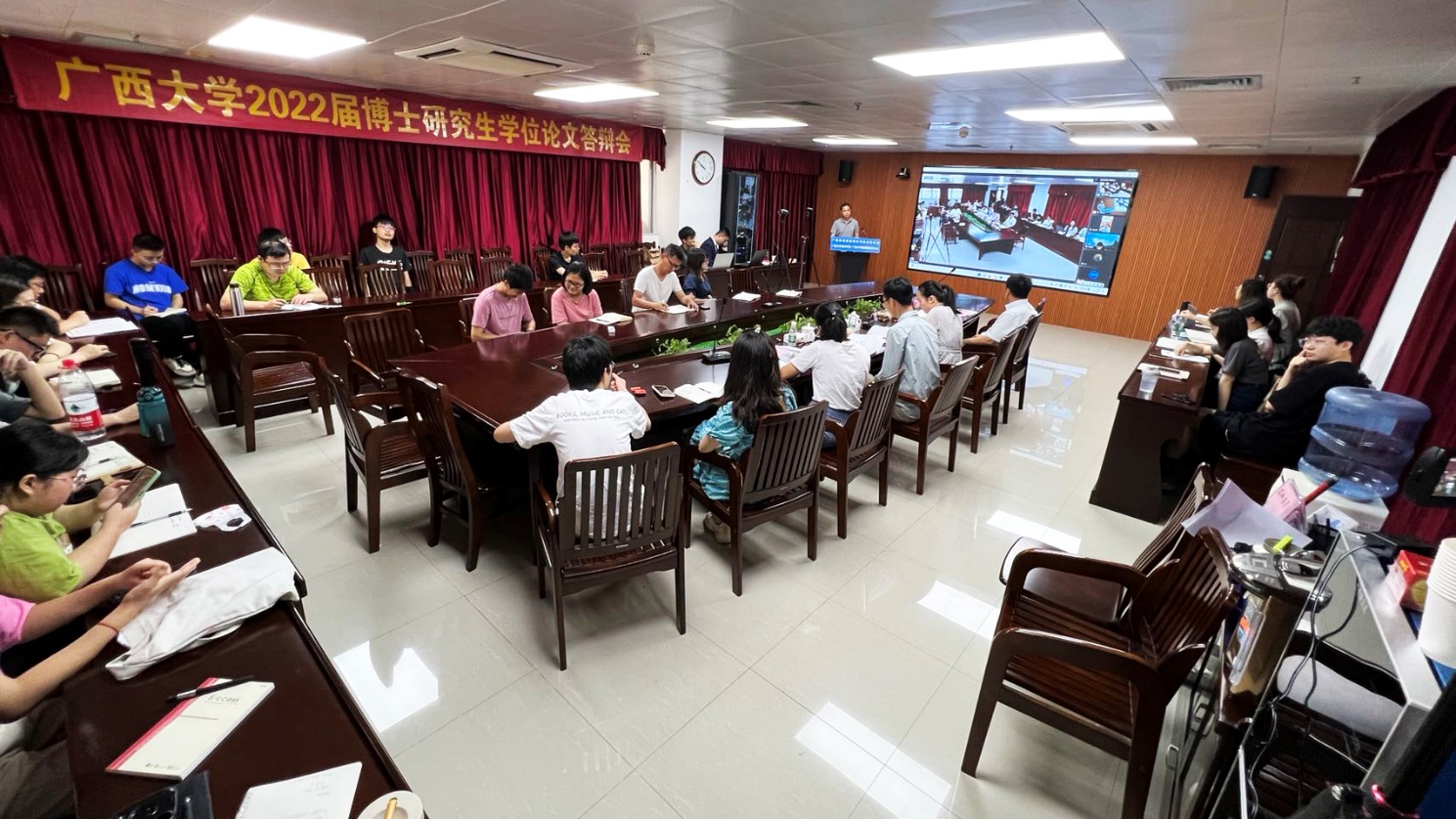 参加答辩的博士研究生与答辩主席、答辩委员、部分在读研究生们合影留念