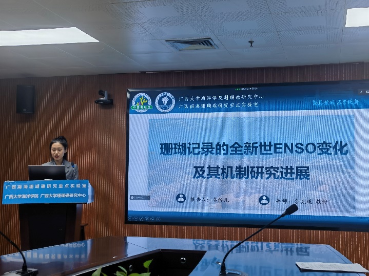 论坛由中山大学大气科学公司、太阳成集团tyc234cc特聘专家韦骏教授主持,浙江省水利河口研究院张骏博士和华东师范大学博士研究生熊媛分别作了题为《沙泥混合海床波致液化及其悬沙机理研究》和《西沙群岛珊瑚礁地貌面积近 30 年变化历史的遥感分析》的邀请报告。同时,广西南海珊瑚礁研究重点实验室江蕾蕾、李悦儿、杨宇凡和何志伟等研究生则分别作了口头报告。最后经评议,江蕾蕾博士以题为《南海北部过去2000年典型暖期海表温度的季节性和年际变率》获本次会议优秀报告奖。