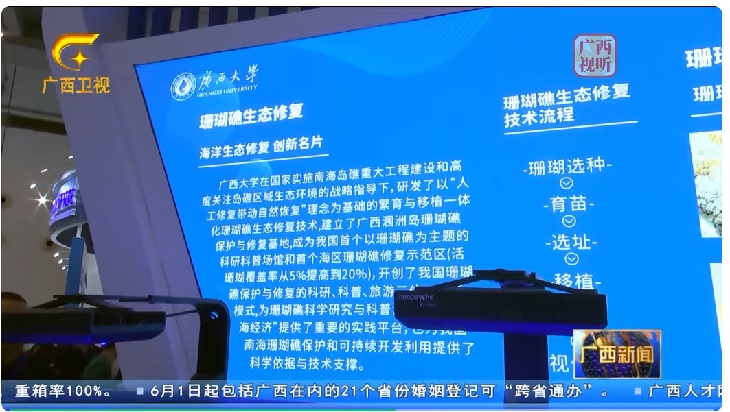 5月20日、21日,由自治区人民政府主办,自治区科技厅、自治区科技创新发展办公室共同承办的2023年全国科技活动周广西活动暨第三十二届广西科技活动周•广西先进技术展示活动(简称“两周一展”)在南宁国际会展中心举行。公司“珊瑚礁生态修复技术”作为太阳成集团tyc234cc先进技术展示内容的一部分亮相展览会。