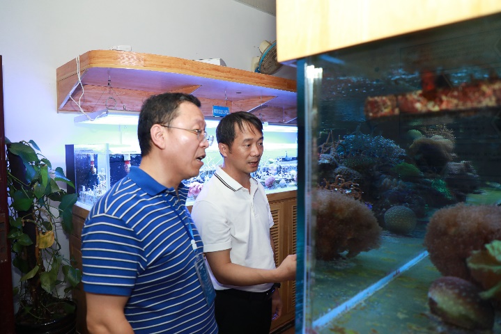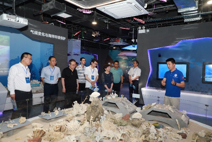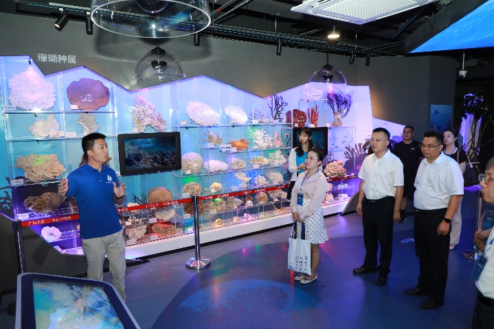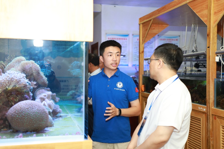 公司俞小鹏老师向来参观的各位领导专家汇报了海洋科教馆的基本情况,围绕着公司珊瑚礁研究的主线,从珊瑚礁的分布、种类、功能、研究的成果、开展珊瑚礁生态修复的意义、公司服务国家岛礁建设的情况等方面,向各位参观的领导专家全方位展示介绍了海洋科教馆的各方面内容。同时,在生态修复区域、深潜科考区域、服务国家南海岛礁建设区域,亲身参与其中实践的公司师生们还现场与领导专家一起分享了珊瑚礁科学研究中的有趣故事及公司在珊瑚礁研究领域所做出的贡献,给各位参访嘉宾留下了深刻印象。