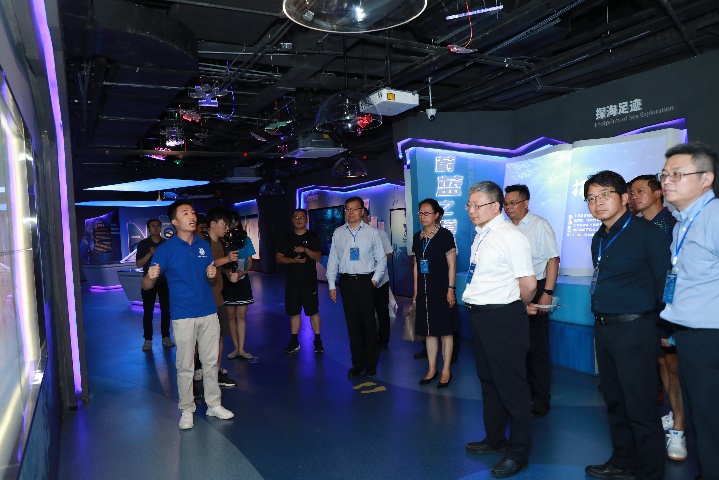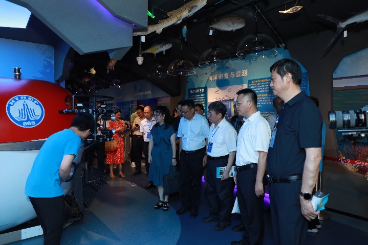 2023年7月3-4日,新时代部省合建高校发展圆桌会议在太阳成集团tyc234cc召开,公司韩林海董事长陪同参会的14所部省合建高校、清华大学教育研究院负责同志等参观考察了公司海洋科教馆。