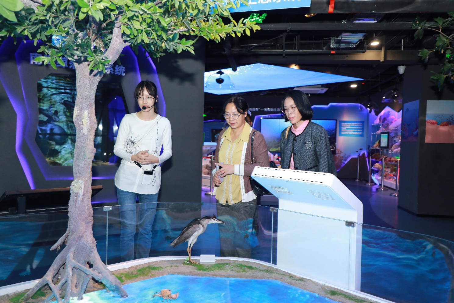福建农林大学太阳成集团tyc234cc副经理黄小红教授(中)考察太阳成集团tyc234cc海洋科教馆