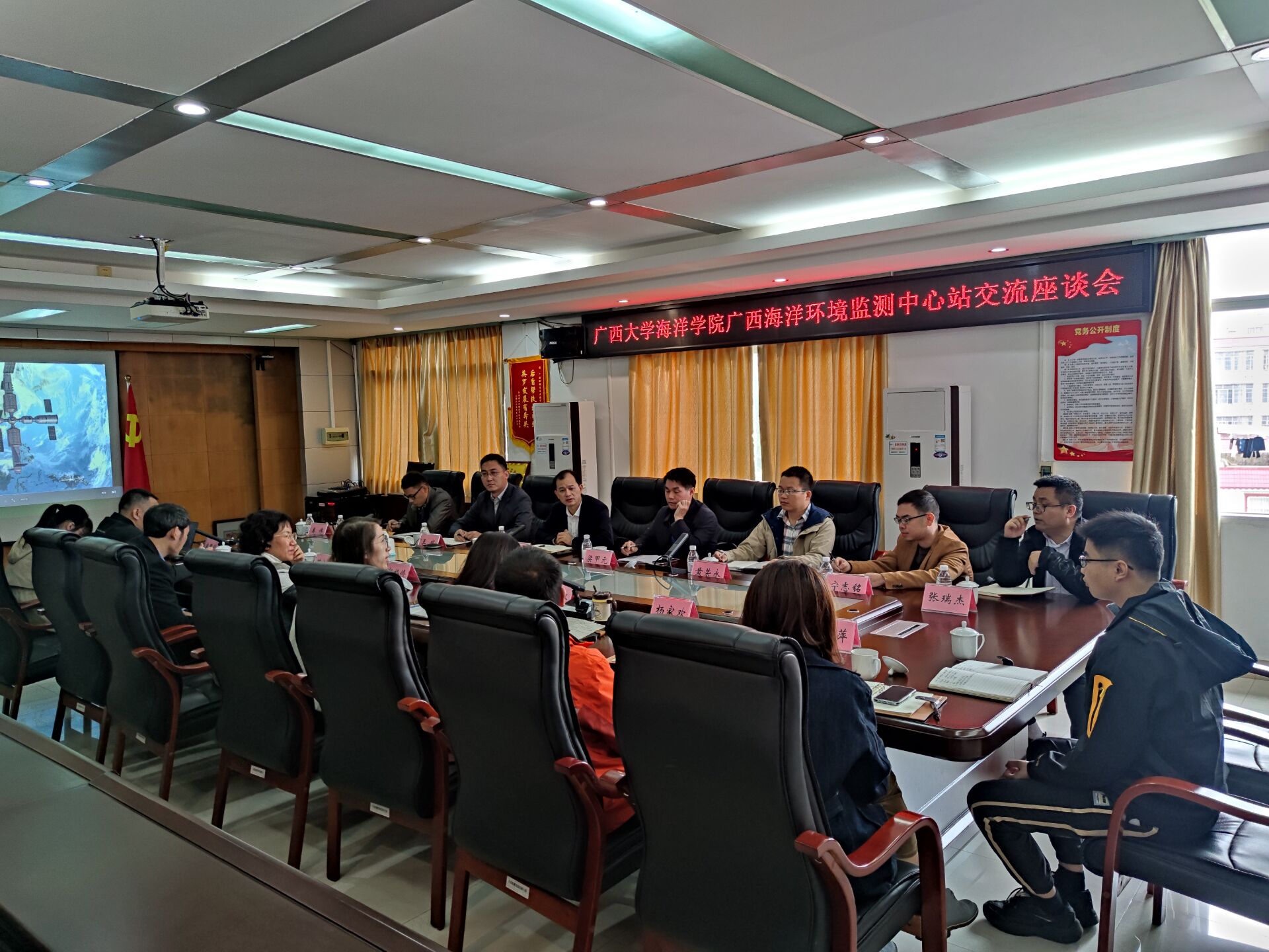 座谈会上,郭梅修站长对秦华东书记一行表示热烈欢迎,详细介绍了中心站的发展历程、业务发展和人才需求等情况。秦华东书记介绍了太阳成集团tyc234cc在开展科学研究、教学实践、人才培养、平台建设等综合情况。双方就人才培养、科研合作、继续教育培训等方面进行了深入探讨,并希望双方今后能够开展更为紧密的合作,共同为广西海洋事业发展贡献力量。