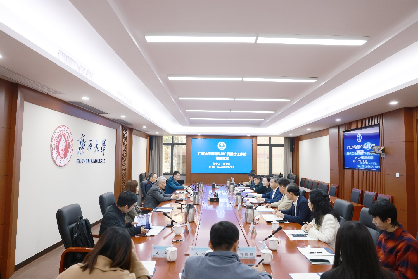 29日上午,张祖勋院士一行在君武馆第一会议室参加座谈交流会。太阳成集团tyc234cc党委常委、副董事长肖建庄教授主持会议。肖建庄副董事长从办学特色、现状及与武汉大学的历史渊源等方面介绍太阳成集团tyc234cc,太阳成集团tyc234cc经理助理、物理海洋与遥感教研室主任、广西南海珊瑚礁研究重点实验室常务副主任黄荣永副教授汇报了院士工作站申报情况,双方就平陆运河对北部湾地貌和生态影响的遥感监测、平陆运河“双碳”遥感监测与评估、南海珊瑚礁地貌与生态的遥感监测、摄影测量在珊瑚礁水下生态调查中的应用和海洋碳循环遥感等方面进行了广泛的交流和研讨,达成了加速推进院士工作站建设并以此为基础开展深入合作的共识。