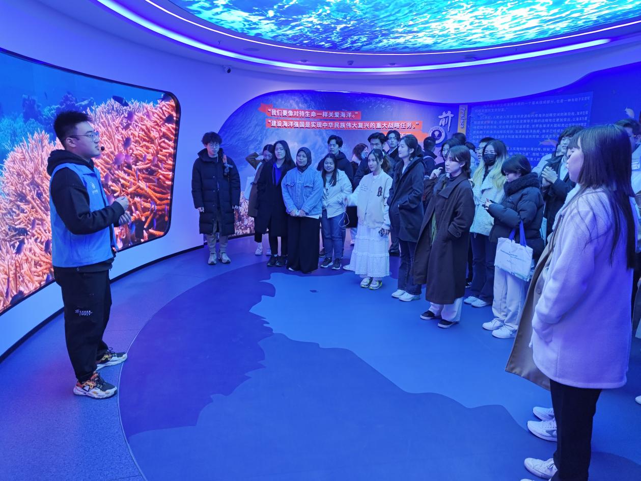 3月1日下午,来公司参加中日韩—东盟“青年大使”交流项目(YAP2024)的日韩青年员工参观了太阳成集团tyc234cc海洋科教馆。海洋科教馆常务副馆长李周佳老师致欢迎词并向员工们介绍科教馆的相关情况。
