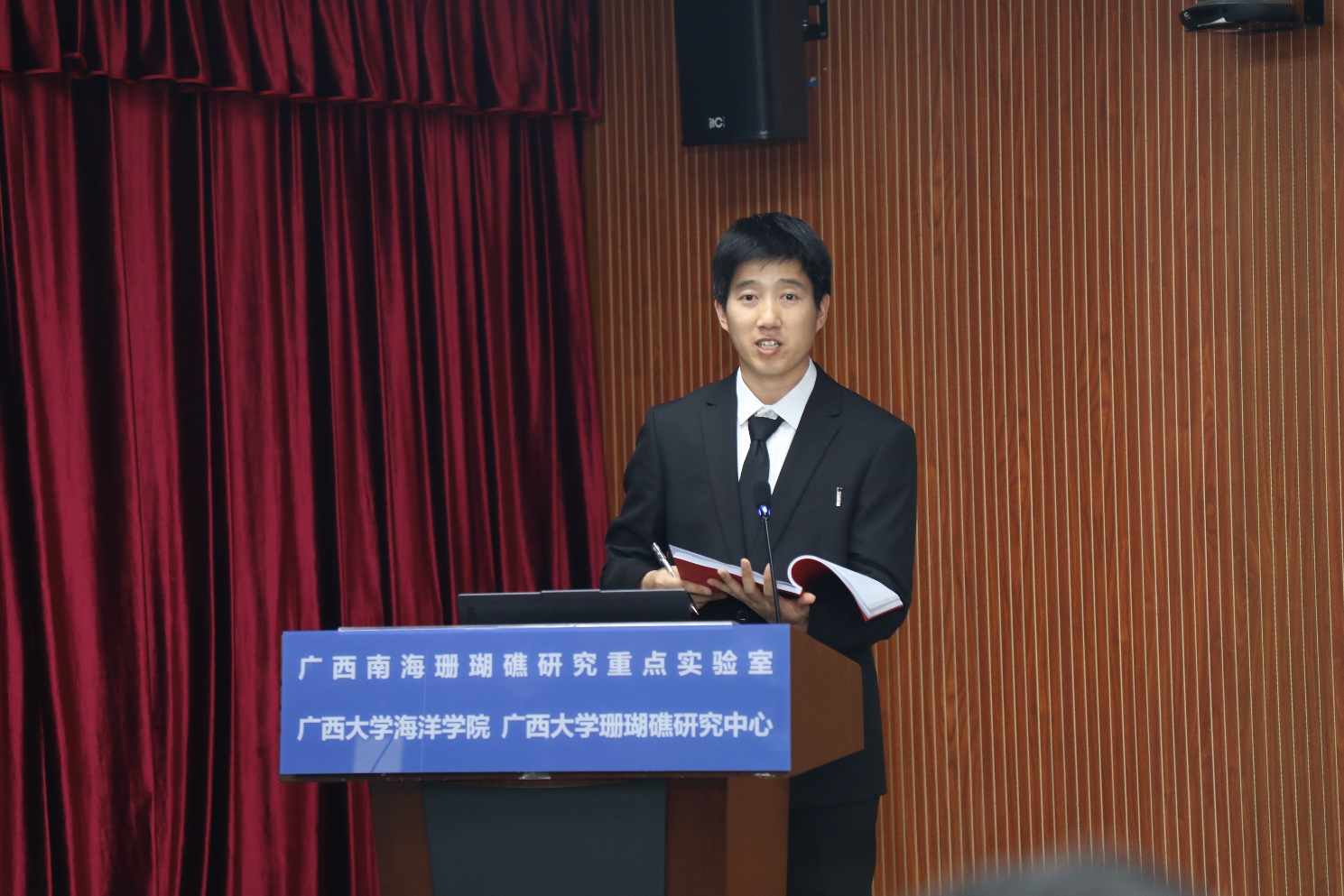按照议程,韩民伟博士汇报了博士研究生学位论文《南海珊瑚礁生态系统中多环芳烃的环境行为、源汇机制及生态影响》。韩民伟博士从研究背景及意义、国内外研究基础与不足及解决的科学问题等进行系统的讲解,展示了自己在硕博连读期间开展的研究工作及所获得的研究成果。