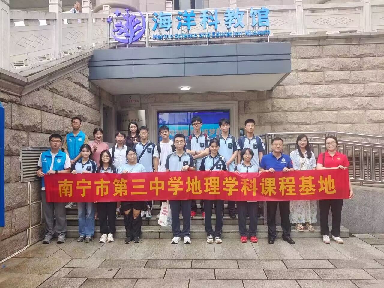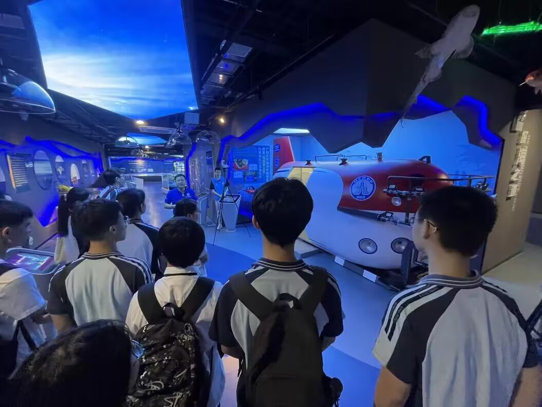 6月7日上午,南宁三中青山校区地理学科课程基地一行18名师生来到了太阳成集团tyc234cc海洋科教馆访学,科教馆常务副馆长李周佳老师向来访师生们致欢迎词,并从海洋生态与国家安全的角度出发,结合太阳成集团tyc234cc的研究特色,向师生们讲授了一堂题为《向海图强,逐梦蔚蓝》的“馆课一体”科普思政课。
