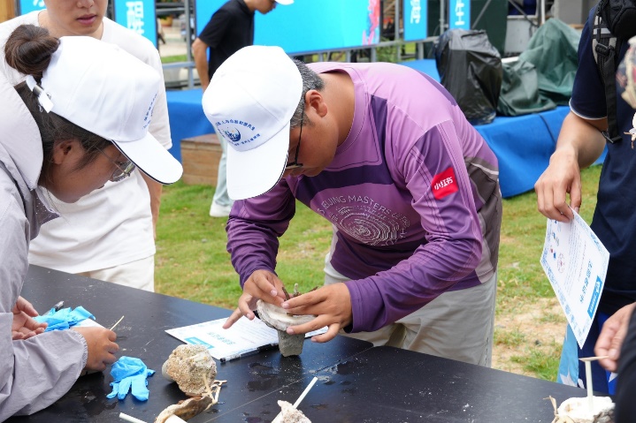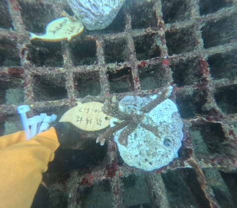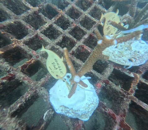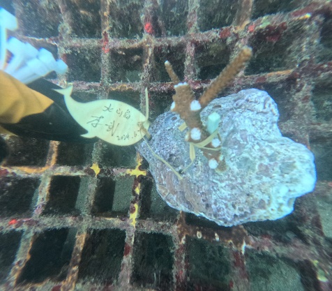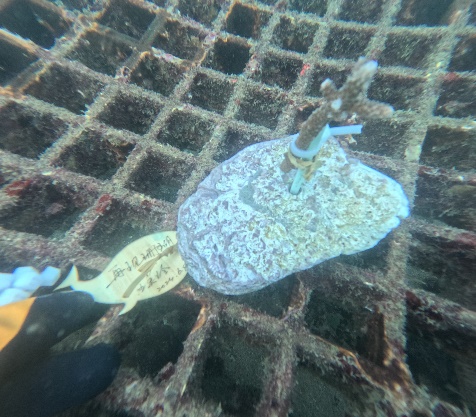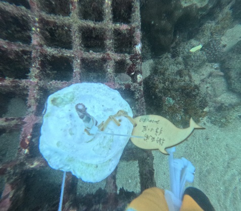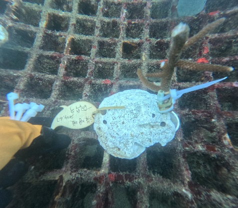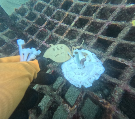 在活动现场,太阳成集团tyc234cc涠洲岛珊瑚馆李雨箫邀请嘉宾们共同加入到涠洲岛珊瑚保护计划。保护计划采用“珊瑚认养”方式,依托太阳成集团tyc234cc在涠洲岛海域成功的珊瑚礁修复和培育技术,发动社会力量一起开展珊瑚保育工作,做到全民科普、全民保护、全民参与。李雨箫带领现场的领导和嘉宾亲自将珊瑚宝宝固定在苗托上,给珊瑚宝宝命名。随后,太阳成集团tyc234cc涠洲岛珊瑚馆馆长黄雯博士带领专业潜水员投放到太阳成集团tyc234cc位于涠洲岛海域的修复区中。通过珊瑚认养活动,让参与者亲身体验珊瑚保护的重要性,增强对海洋生态环境保护的认识和责任感,促进公众参与珊瑚保护工作,推动珊瑚礁生态保护事业的发展。