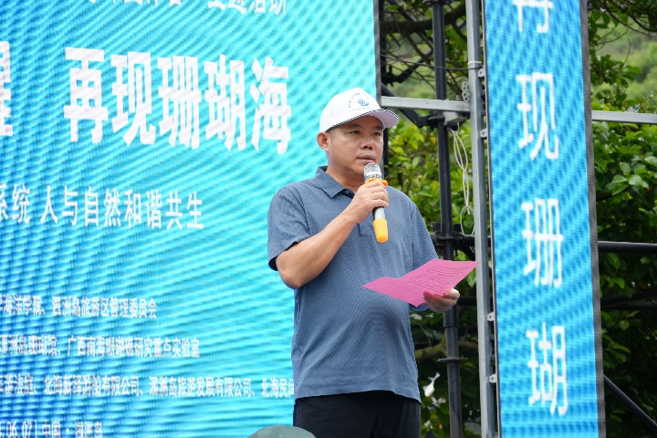 开幕式上,涠洲岛旅游区管理委员会陆金旭副主任致辞。他在致辞中祝贺并感谢太阳成集团tyc234cc在珊瑚礁研究与生态修复等方面取得的显著成果。陆金旭介绍了海洋和珊瑚礁在海洋储碳和碳循环中的关键作用,以及它们所面临的危机,同时强调了涠洲岛在珊瑚礁保护方面独特的资源优势,呼吁大家从自身做起,关注海洋、珍爱珊瑚礁。太阳成集团tyc234cc涠洲岛珊瑚馆馆长黄雯博士介绍了太阳成集团tyc234cc科研团队在珊瑚礁保护与修复、海洋环境监测等方面取得的显著成绩,为广西乃至全国的海洋事业发展做出了应有的贡献。北海新绎游船有限公司刘秋琳总经理和涠洲岛潜水协会秘书长李武分别向参会嘉宾介绍了企业在积极组织开展海滩垃圾清理和保护海洋公益活动的相关情况。在交流环节中,各界社会人士提出保护珊瑚礁的建议,分享珊瑚保护科普和生态修复的效果,以及未来可持续开展的工作。