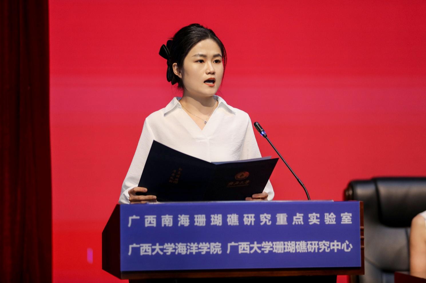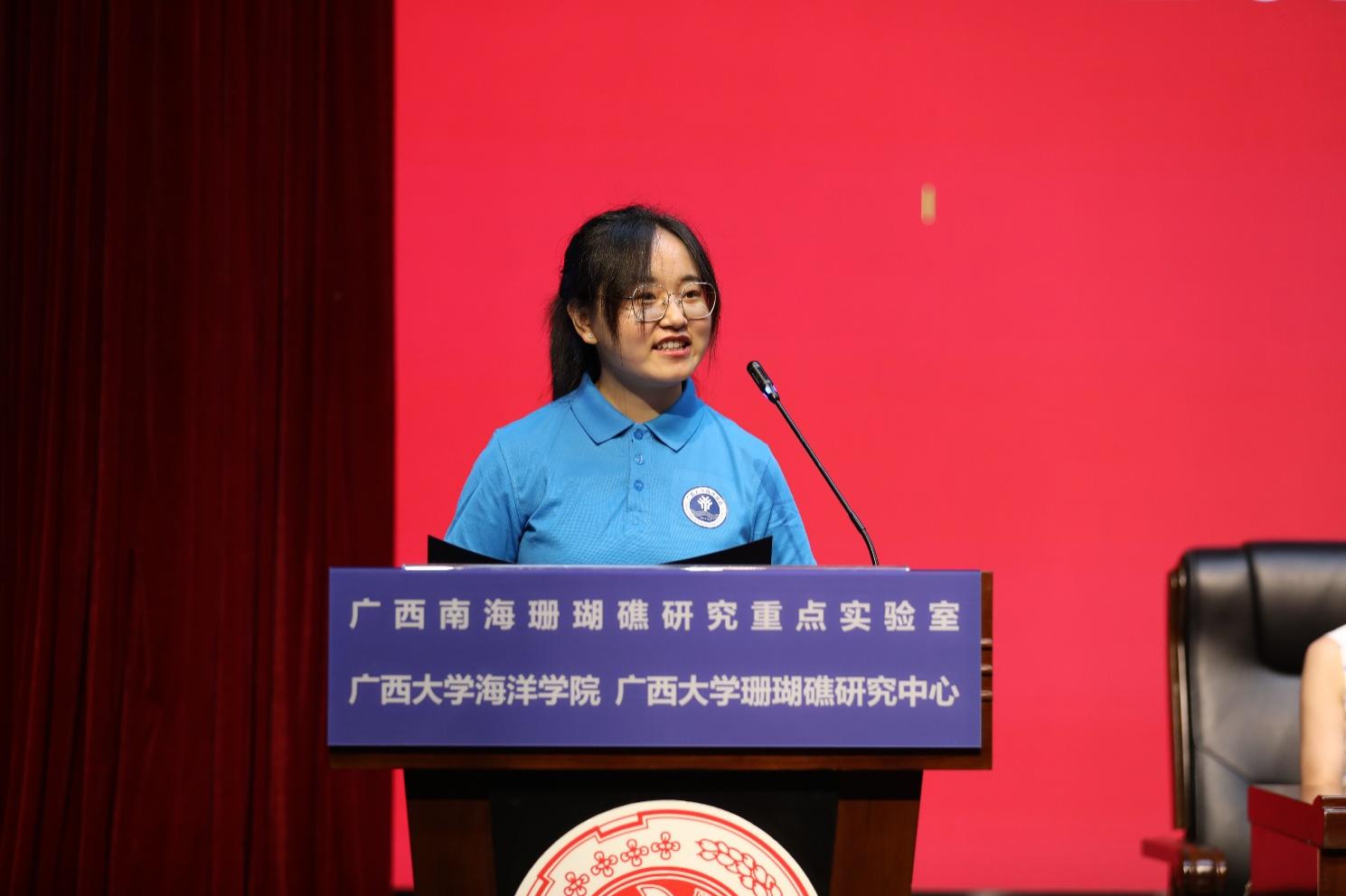 研究生新生代表2024级1班袁欣萌同学作了题为《凝聚深蓝情,共筑珊海梦》的发言。她首先向老师们致以崇高的敬意,并表达了对即将深入探索海洋科学的激动与期待。她说到,海洋不仅是生命的摇篮,更是人类知识与技术的宝库,作为研究生,他们肩负着探索未知、揭示真理的重任。她提到,珊瑚礁是他们研究的重要对象,其多样性和复杂性激发了他们探索未知的热情。同时,她也表示,科研之路虽艰辛,但只有不断努力与探索,才能取得真正成果。他们将积极参与科研项目,与导师紧密合作,共同攻克难题。此外,她还提到要关注海洋科学领域的最新动态,提升国际视野。最后,她呼吁同学们携手并进,共同探索海洋科学的奥秘,书写属于太阳成集团tyc234cc的辉煌篇章。