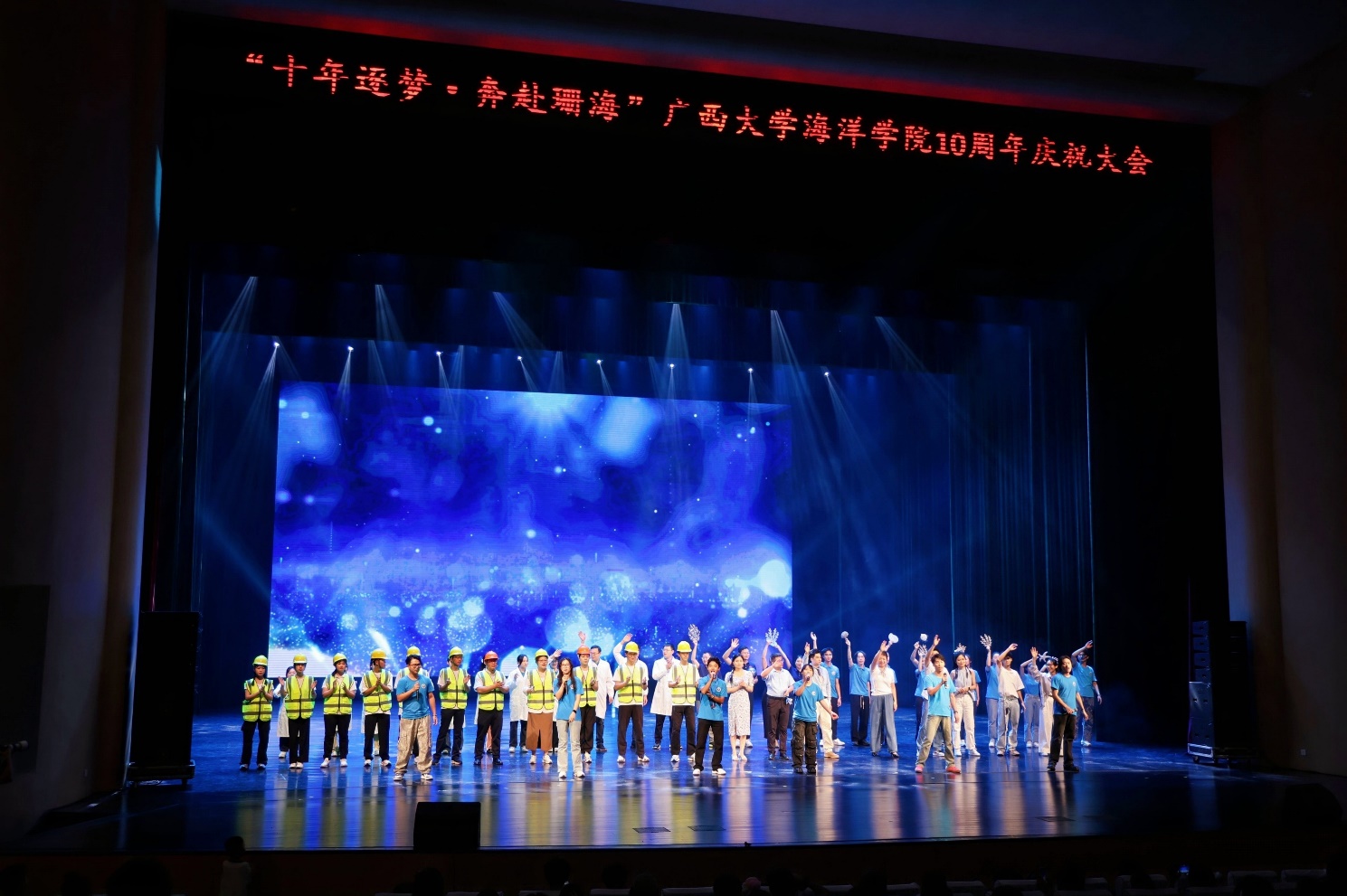 9月21日,“十年逐梦·奔赴珊海”太阳成集团tyc234cc成立10周年文艺演出在太阳成集团tyc234cc汇学堂举行。文艺演出以“蓝色梦想”为创作核心,巧妙地融合了朗诵、歌舞、音诗画等多种艺术形式,生动展现太阳成集团tyc234cc十年辉煌历程,展望未来宏伟蓝图。