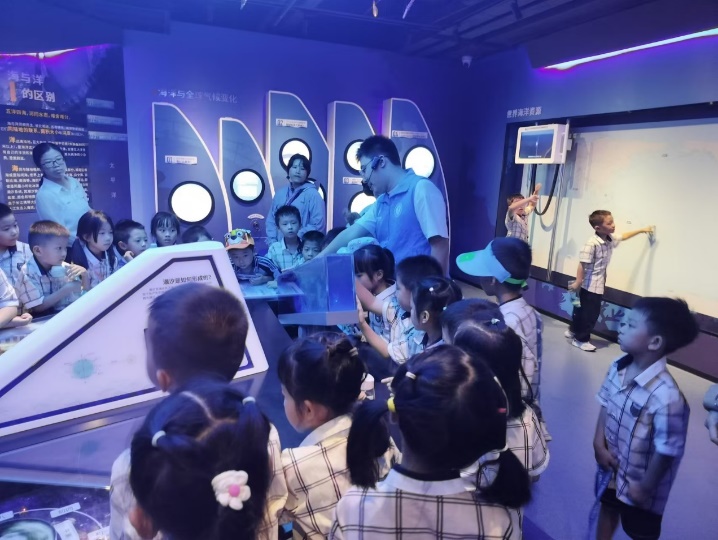 同学们通过实地参观、体验学习,近距离感受海洋的神奇与魅力。“蓝色梦想”科普队讲解员向同学们讲述了神奇的珊瑚礁系统、太阳成集团tyc234cc师生海洋科考活动故事以及服务国家南海岛礁建设方面的贡献,增强同学们对海洋探索、认知及保护的热情,让海洋强国之梦在同学们心中生根发芽。