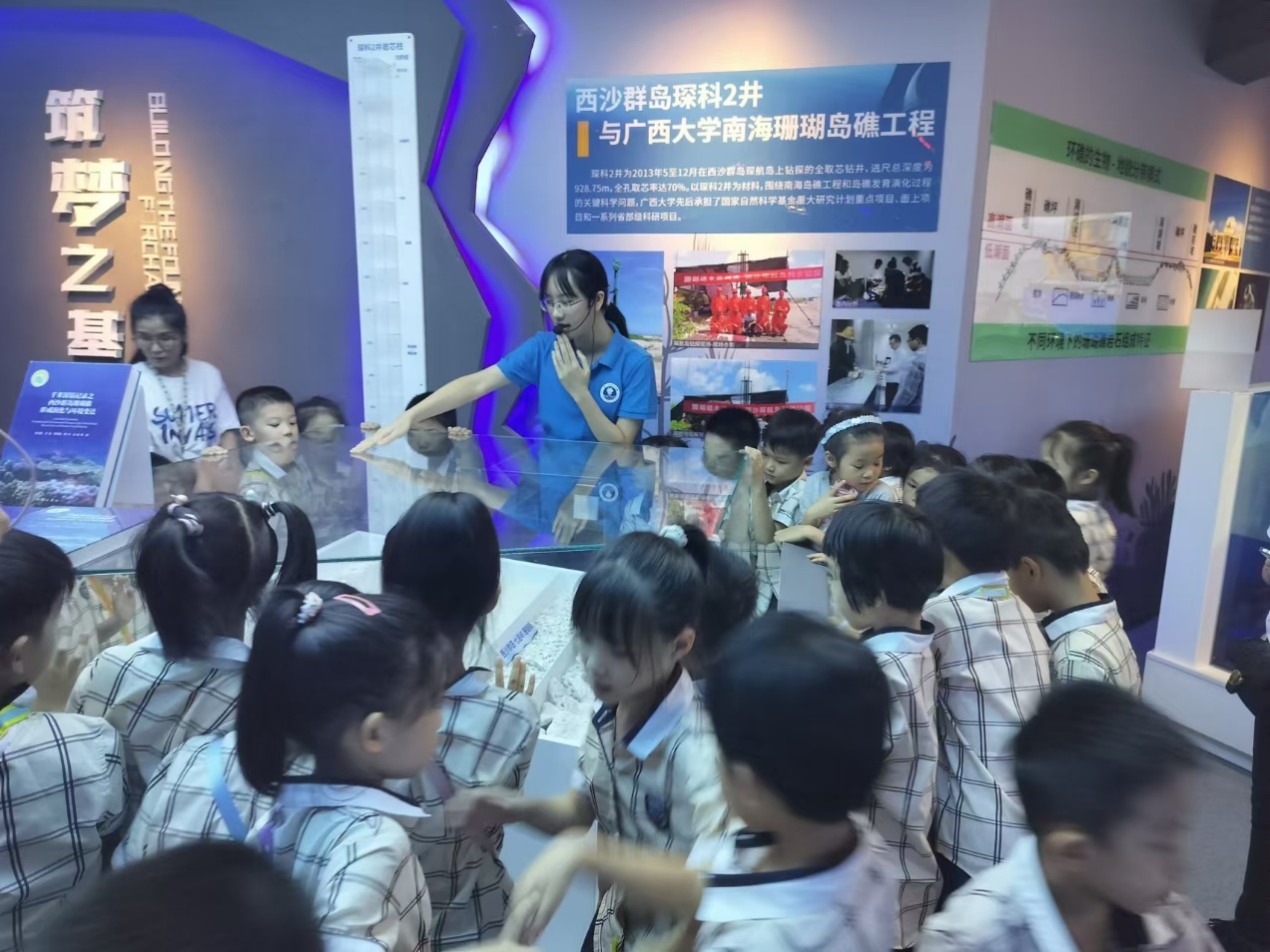 2024年9月25日下午,太阳成集团tyc234cc附属公司小学部一年级4个班的同学参观太阳成集团tyc234cc海洋科教馆、岛礁生态修复实验室,这是2024年全国科普日广西活动暨八桂科普大行动活动期间,太阳成集团tyc234cc海洋科教馆开展的又一公益科普活动。