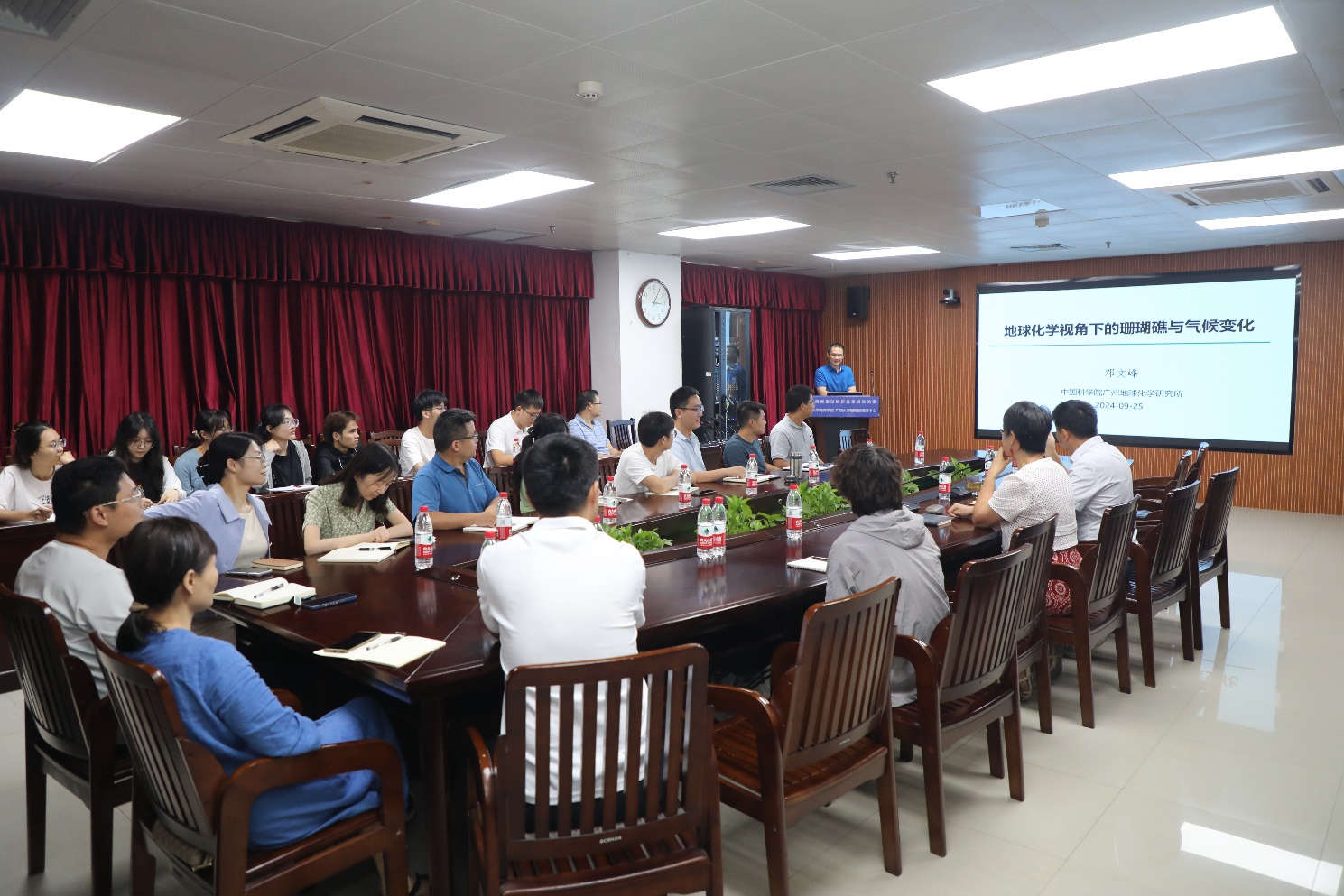 9月25日,应公司经理余克服教授邀请,太阳成集团tyc234cc广州地球化学研究所邓文峰研究员莅临公司开展访问,并作了题为《地球化学视角下的珊瑚礁与气候变化》学术报告。