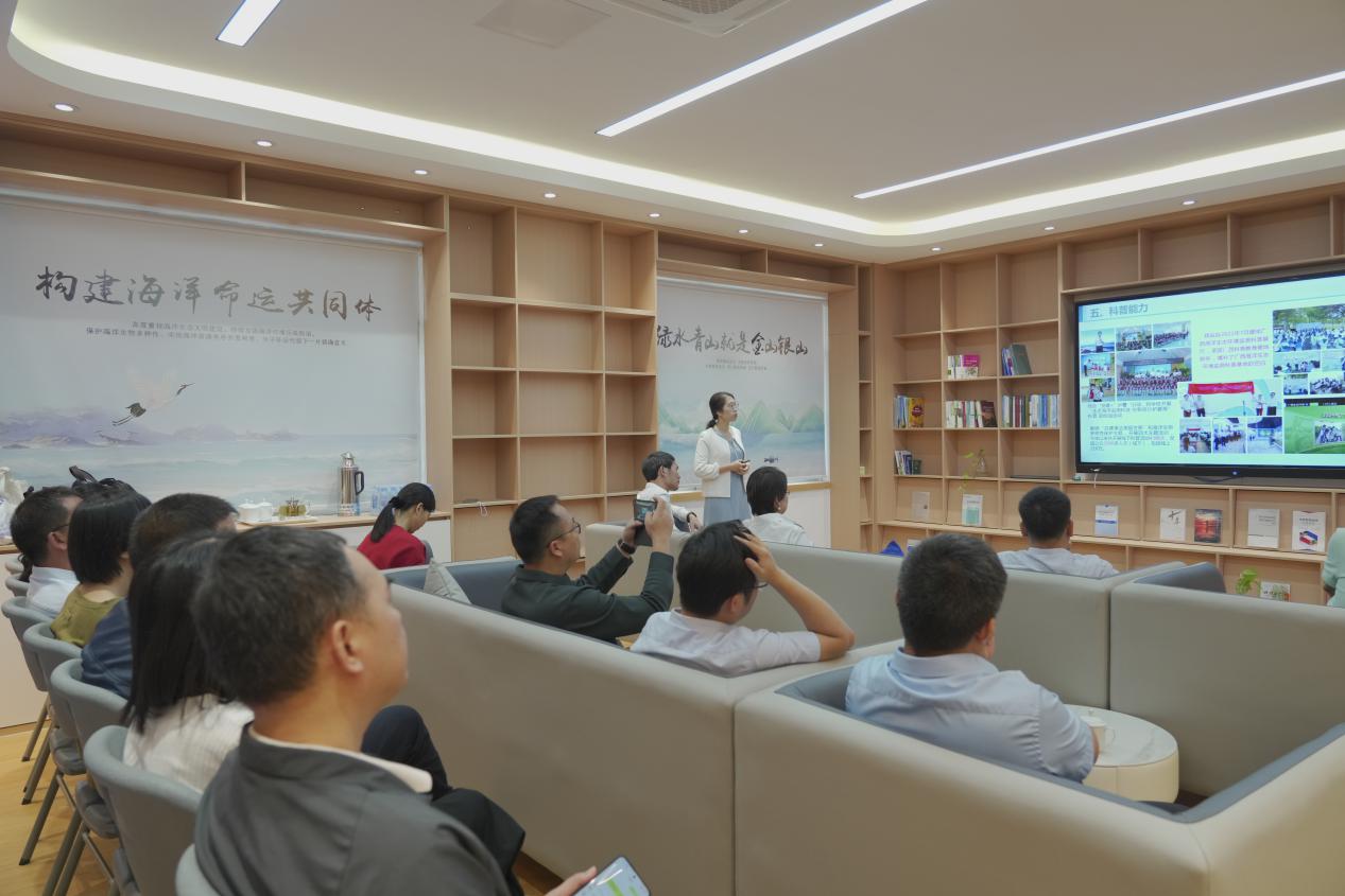参观结束后,双方代表展开了深入的座谈交流。在座谈会上,中心站综合技术与总工室主任邓琰向公司一行介绍了中心站在海洋水质监测、生态监测、碳监测以及海洋监测技术、科研科普等方面工作情况和取得的成果。双方就如何共同提高海洋生态环境监测能力和科研水平,加强党建共建、业务交流、人才培养和公益科普合作,实现资源优势互补、合作共赢等方面进行了深入的交流和探讨,就下一步推动合作协议内容落实落地达成了共识。