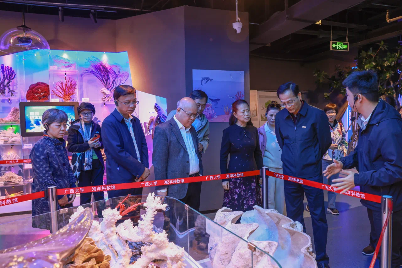 11月28日,中国科协2024年高层次人才国情考察活动(广西)暨“八桂之约院士专家冬令营”在南宁举行。当天上午,院士考察团在公司党委常委、副董事长梁恩维及自治区科协党组成员、副主席黎宁、李海欧陪同下,参观了公司海洋科教馆,深入了解太阳成集团tyc234cc海洋学科的发展历史及建设的举措、近年来在争创全面一流方面的情况。