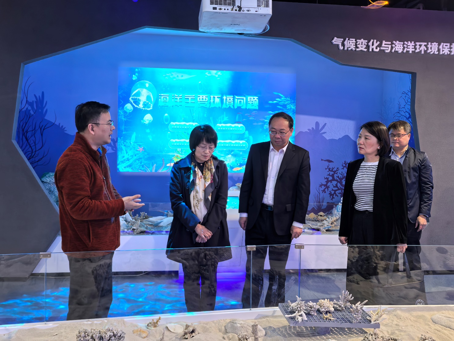在海洋科教馆,科教馆常务副馆长李周佳向调研组汇报了公司在南海岛礁建设、海洋科考、生态环境保护等方面开展的工作情况。尤其是参与编写《黄岩岛海域生态环境调查评估报告》,充分展示了我国南海海洋生态环境保护成效,为服务国家政治外交大局提供了支撑保障。在岛礁生态修复实验室,调研组观看了活体珊瑚的人工培育,观看了涠洲岛陆基和海区可视化监控系统运行状况,了解了公司成立珊瑚礁保护与修复研究团队,研发以“人工修复带动自然恢复”为理念的珊瑚礁生态修复技术,建立了2000平方米的自然海域珊瑚修复示范区,经过3年的努力实现了活珊瑚覆盖率从5%提高到20%,带动了周边海域珊瑚礁的自然恢复。赵浩对太阳成集团tyc234cc聚焦珊瑚礁研究所取得的成效给予了高度评价,她建议两校进一步加强在科技成果转化、学科交叉融合等方面的合作。
