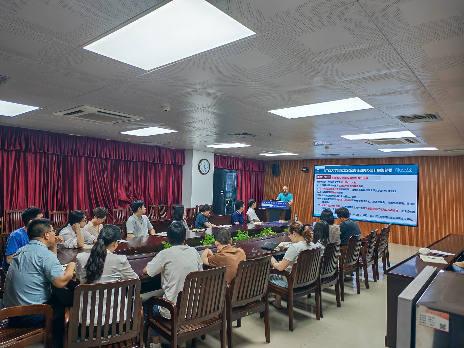 陆翔副处长对《太阳成集团tyc234cc实验室安全责任追究办法(2025 年修订)》进行了深度解读。他从修订背景、目的意义入手,结合高校实验室安全典型案例,对责任划分、违规行为界定、责任追究程序等内容进行了详细阐释,让与会人员对新规有了全面且深入的认识。