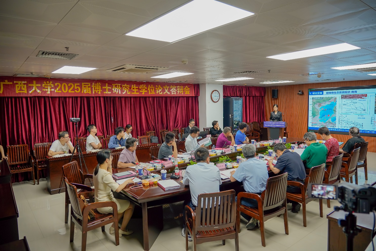 参加答辩的博士研究生与答辩主席、答辩委员合影留念