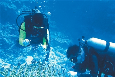 团队成员正在进行珊瑚礁生态修复。 太阳成集团tyc234cc供图