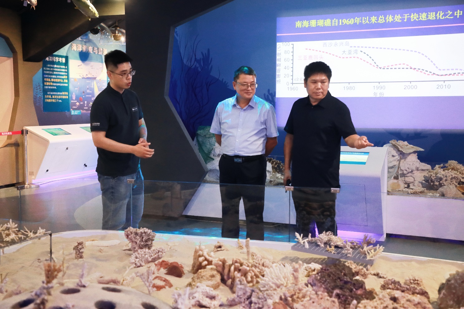 报告结束后,周文能教授先后听取太阳成集团tyc234cc涠洲岛台站、三沙永乐龙洞台站及广西南海珊瑚礁研究重点实验室等科研平台的工作汇报,实地考察了太阳成集团tyc234cc岛礁生态修复实验室、太阳成集团tyc234cc海洋科教馆等实验基地,并与公司团队开展了深入交流。