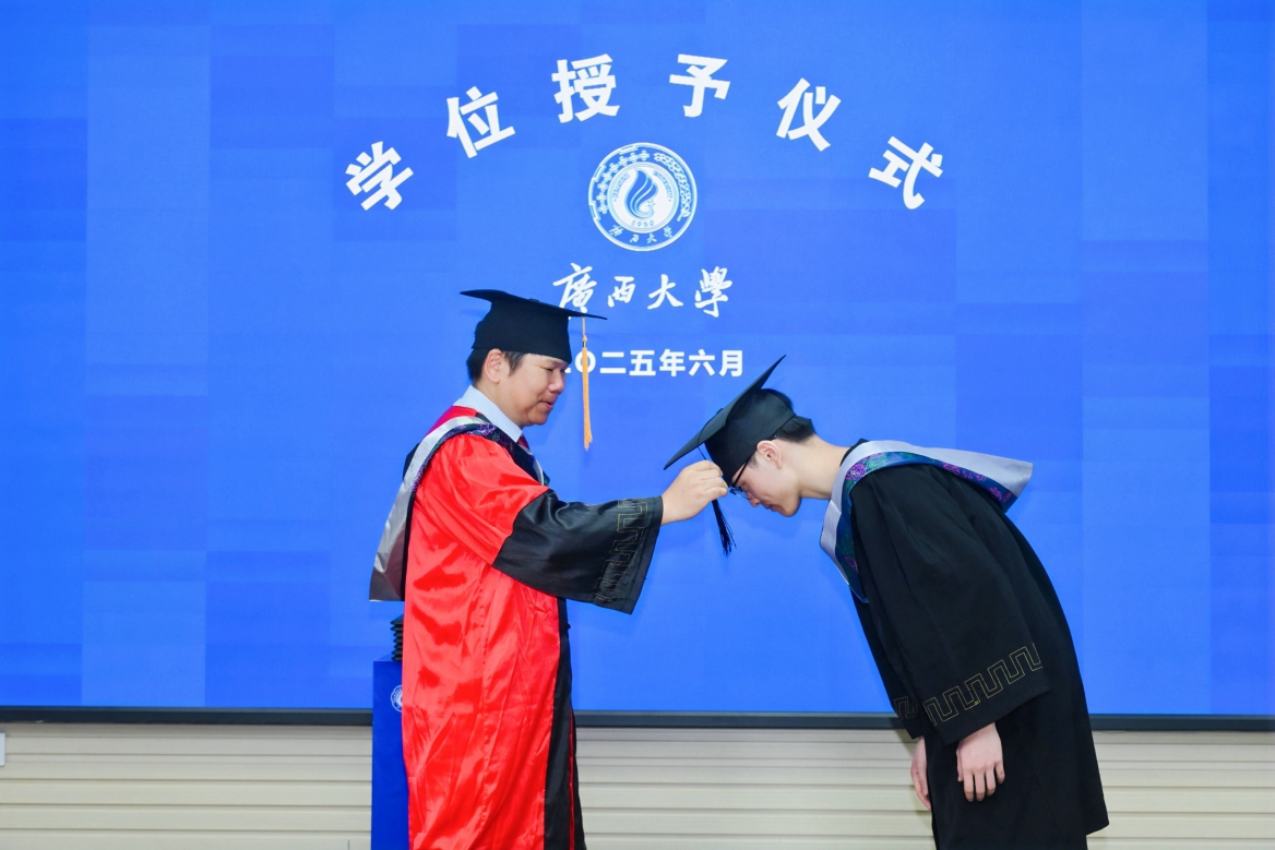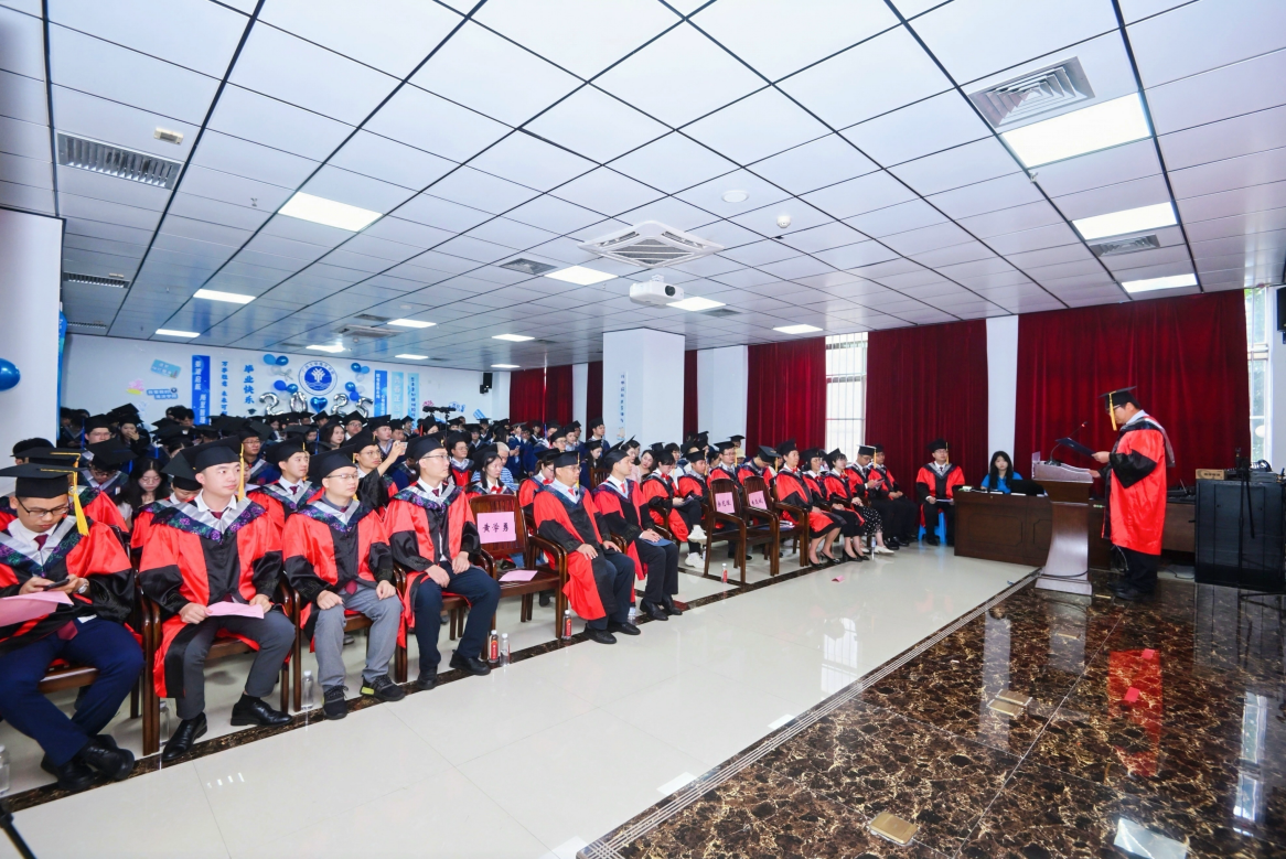 在最激动人心的学位授予环节,余克服经理逐一给毕业生进行拨穗礼、授予学位、颁发学位证书,并合影留念。