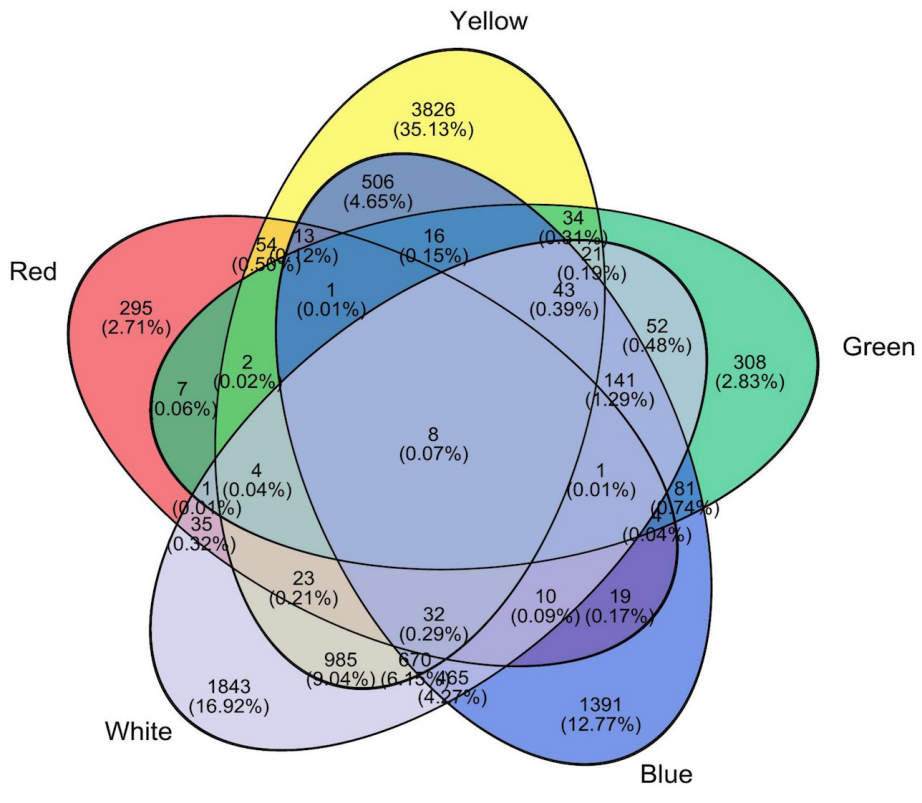 图2. 不同颜色PS-MPs暴露对虫黄藻差异表达基因集分析