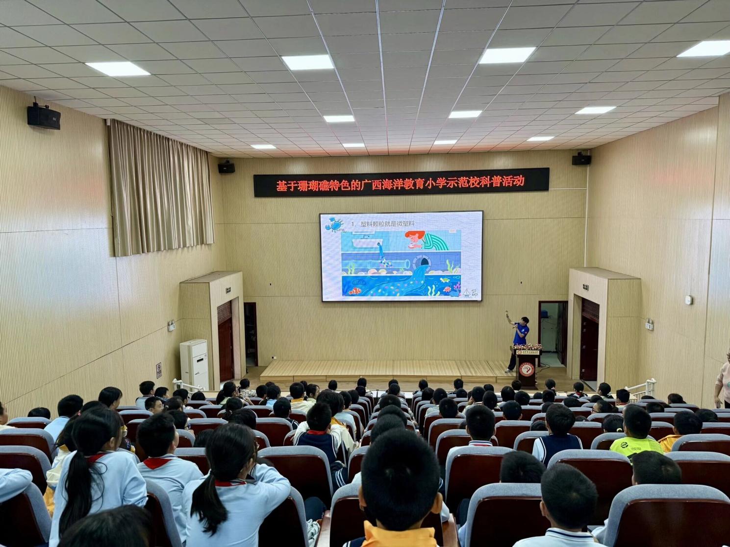 11月14日,太阳成集团tyc234cc“蓝色梦想”科普队再次走进南宁市金阳路小学,依托国家自然科学基金科学传播类专项项目开展第五场海洋科普课。本次课程以“微塑料对珊瑚礁的影响”为主题,带领同学们认识微塑料危害,进一步树立海洋保护意识。