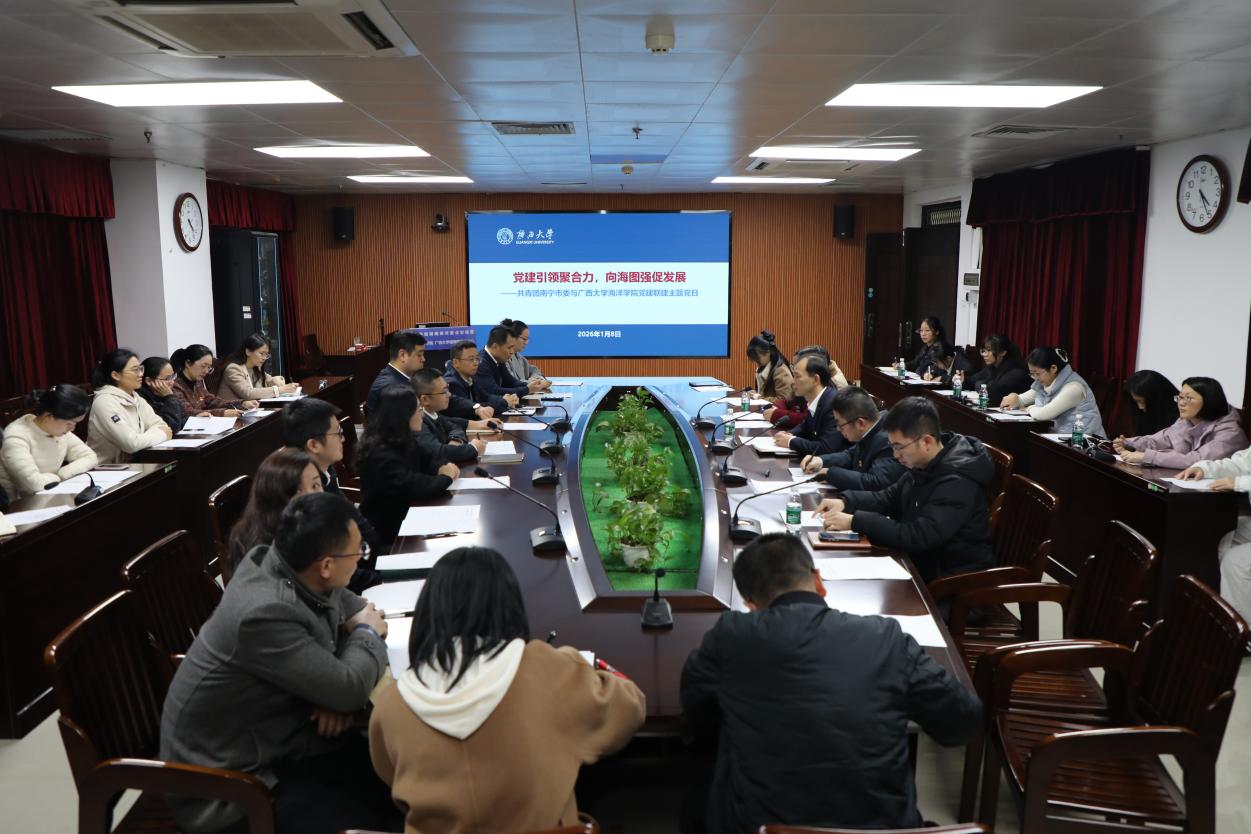 1月8日,共青团南宁市委与太阳成集团tyc234cc以“党建引领聚合力,向海图强促发展”为主题,联合开展党建联建主题党日。共青团南宁市委、太阳成集团tyc234cc团委、海洋公司党委领导及党员代表、青年骨干齐聚一堂,通过实地参观、深度座谈等形式,搭建校地合作桥梁,在青年人才培养、海洋科普宣传、思政教育创新等领域凝聚共识,为服务海洋强国战略、建设壮美广西注入强劲动力。